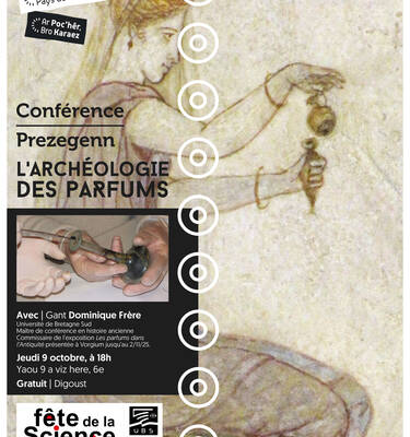 Dans le cadre de l'exposition temporaire Les parfums dans l'Antiquité présentée jusqu'au 2 novembre à Vorgium, et de la Fête de la science 2025, nous recevrons Dominique Frère, maître de conférence à l'Université de Bretagne Sud et commissaire de l'expo en cours, pour une présentation suivie d'un échange autour de ses travaux de recherche et expérimentations l'amenant à redécouvrir aujourd'hui les arômes antiques.